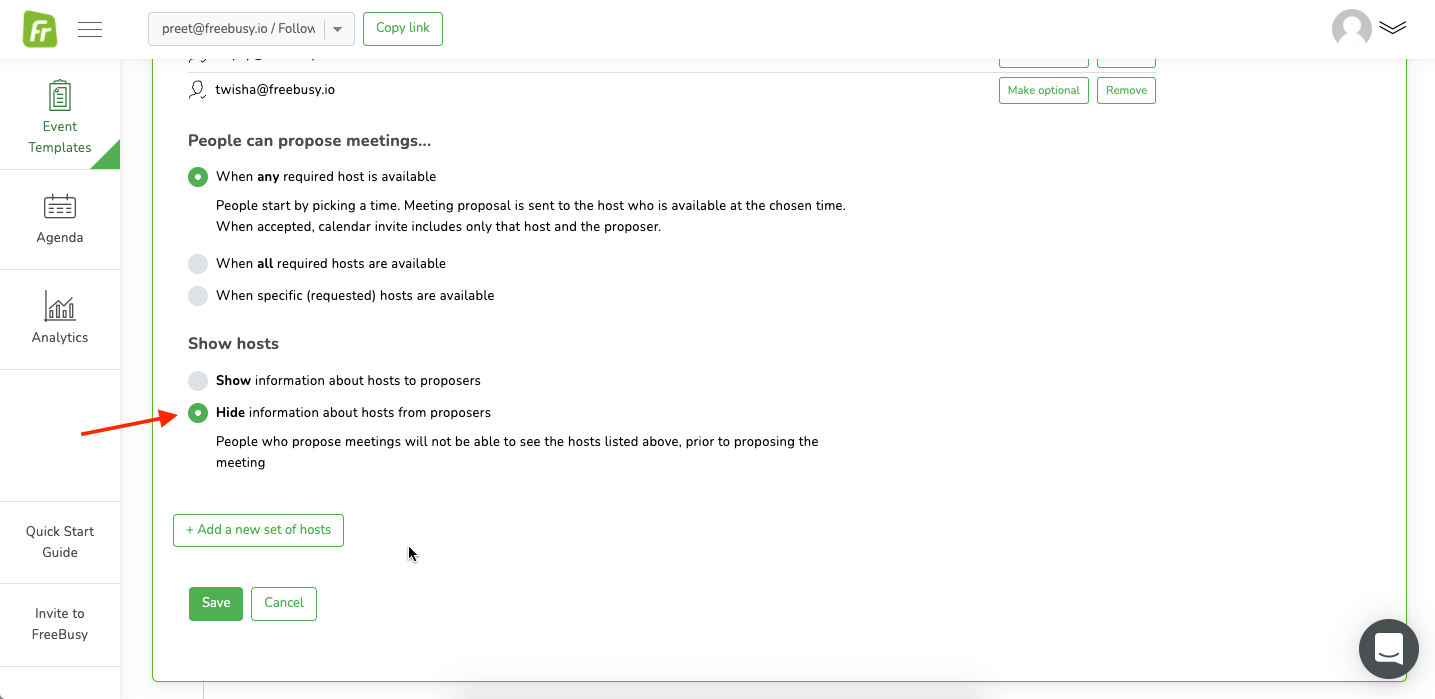 Step 3: Scroll a little to the `Show hosts` section and select the `Hide information about hosts from proposers`