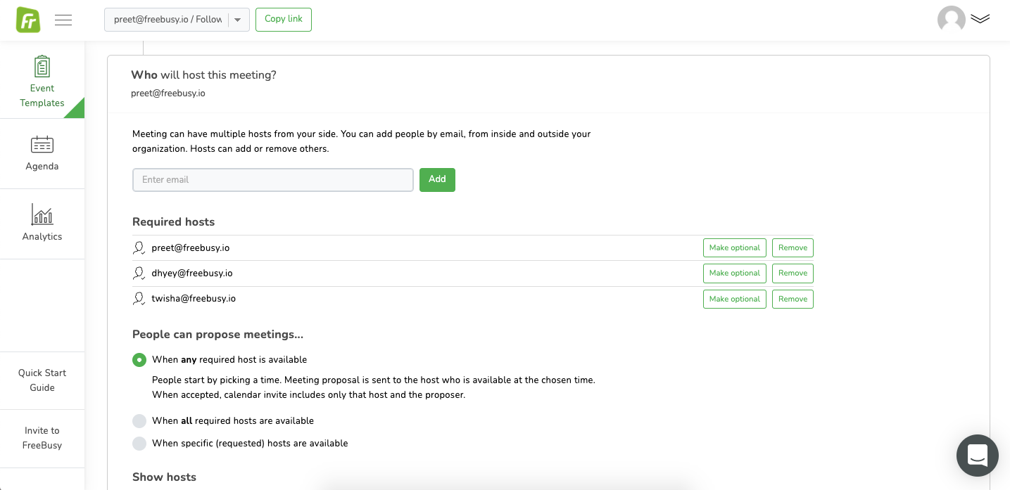 Step 2: Click on the section that says: `Who will host this meeting?`