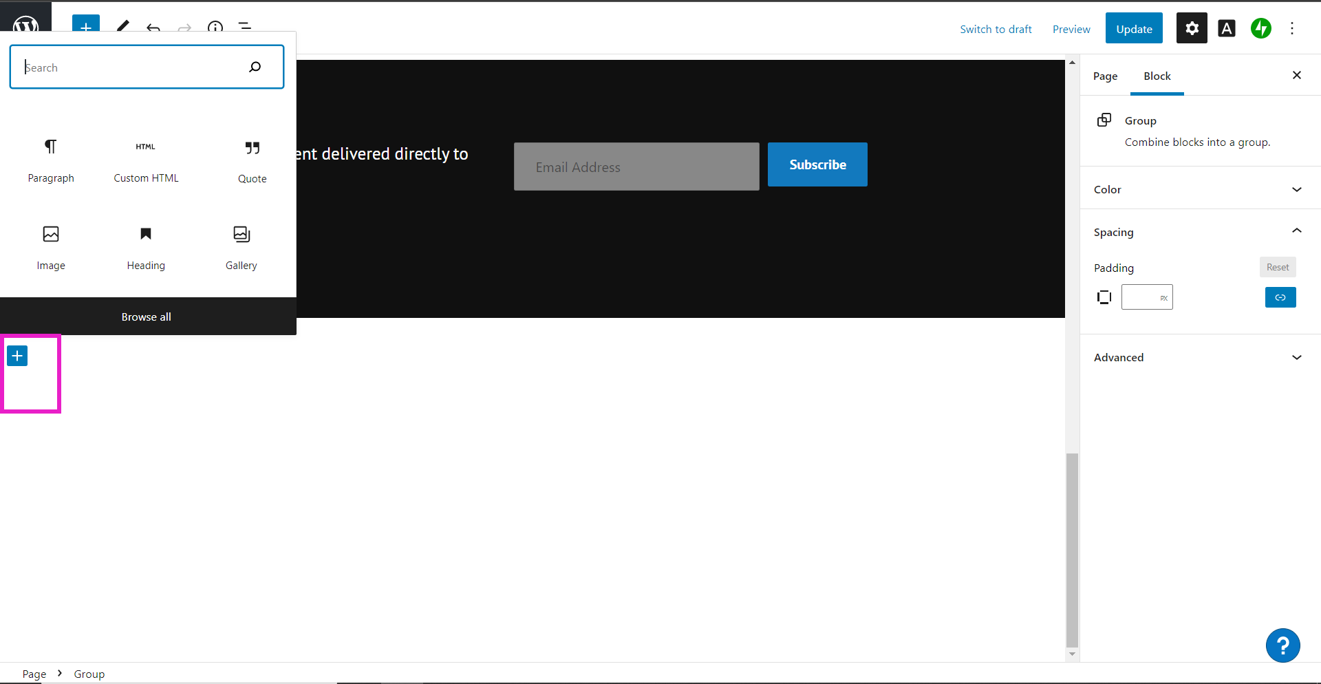 Step 1: Add new page or add new block