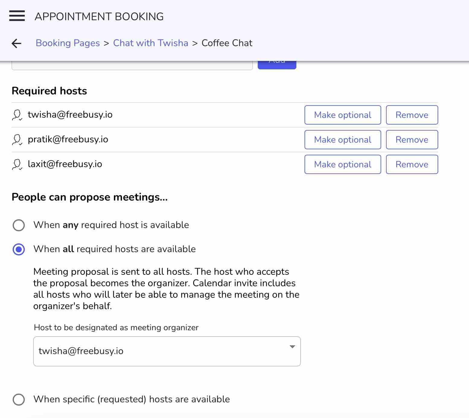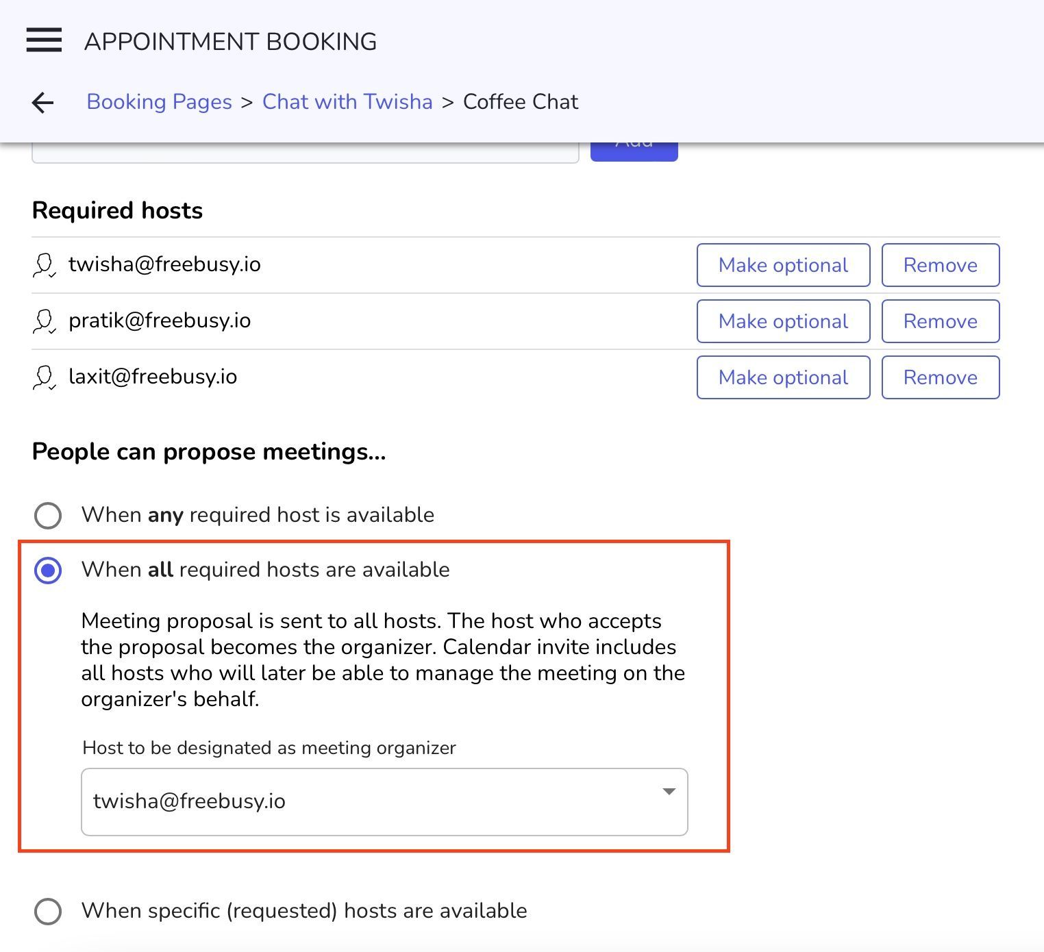 Selecting this option will ensure that times will only be shown when ALL of these participants are available.