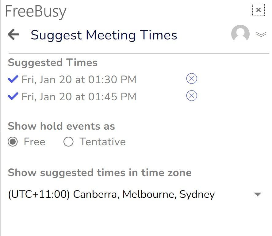 FreeBusy also suggests the earliest time you can meet with these participants.