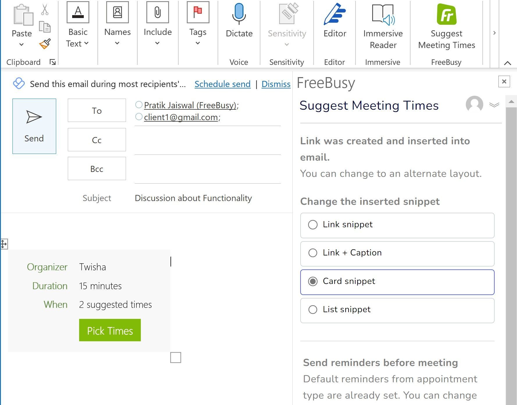 Step 7: Insert Meeting poll link to email and send it to participants with whom you want to schedule meeting.