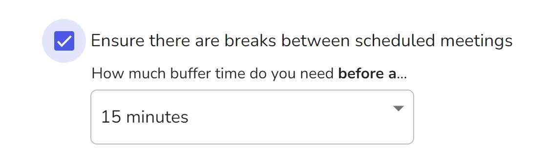 You can prevent back-to-back meetings getting scheduled with you using a Meeting Buffers in your available hours for meeting. Here is how to set it.