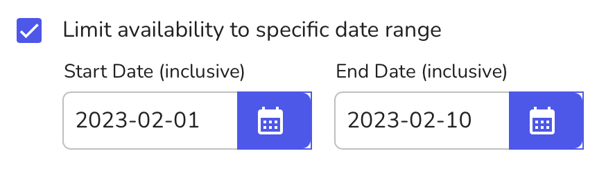 Step 6: On your right select "Limit availability to specific date range" and select the dates of your travel