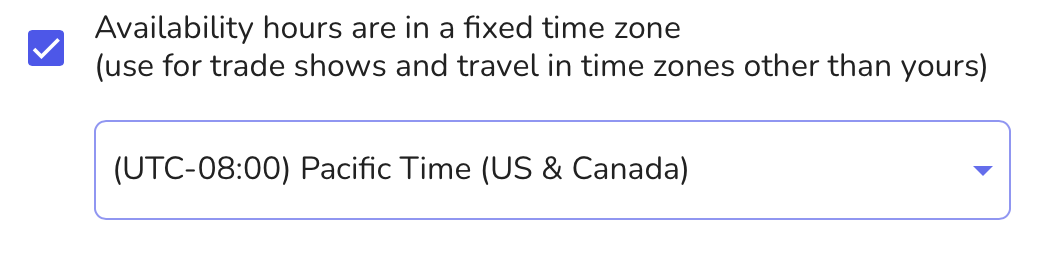 Step 5: Locate "Availability hours are in a fixed time zone" option and select the time zone for the city you are traveling to