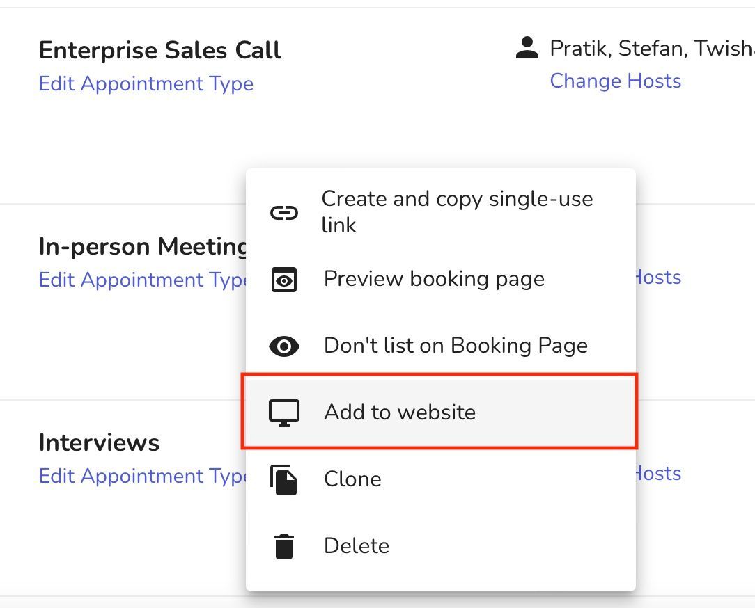 Step 3: Locate the Appointment Type that you wish to embed and hover over it