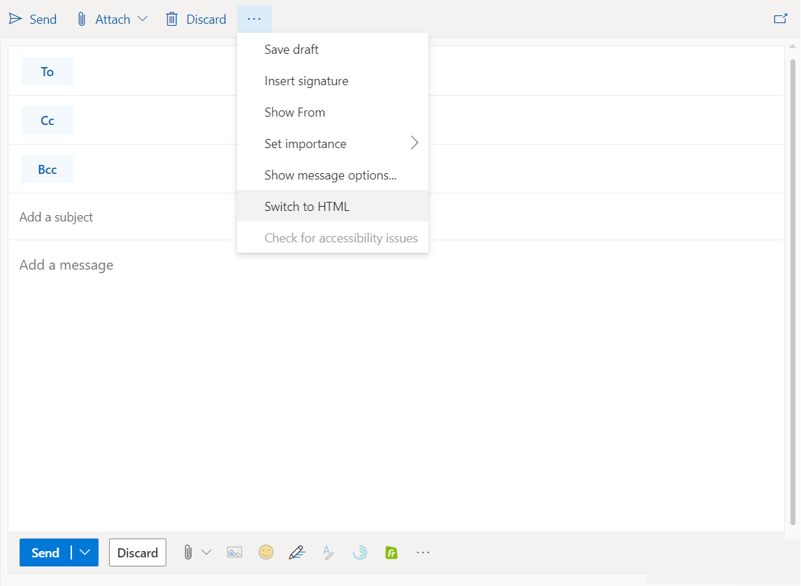 - Select “New Email” to compose the message, then select the “Format Text” tab.
