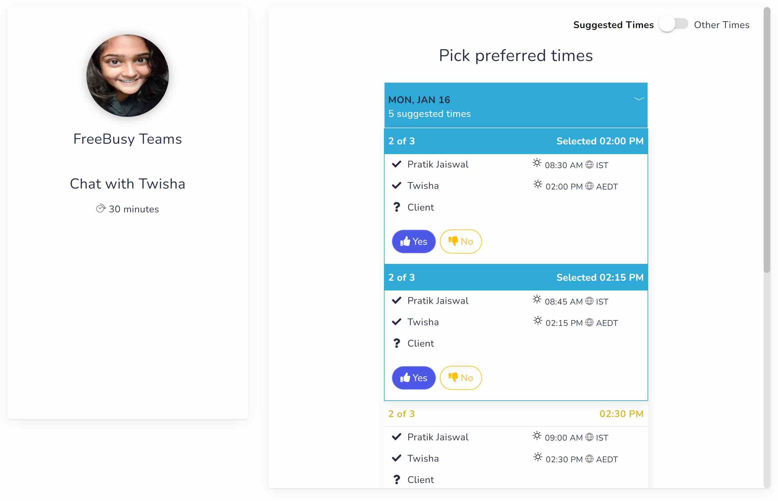 Step 7: Your guests will see the times which candidate has picked and they will be able to vote on it.