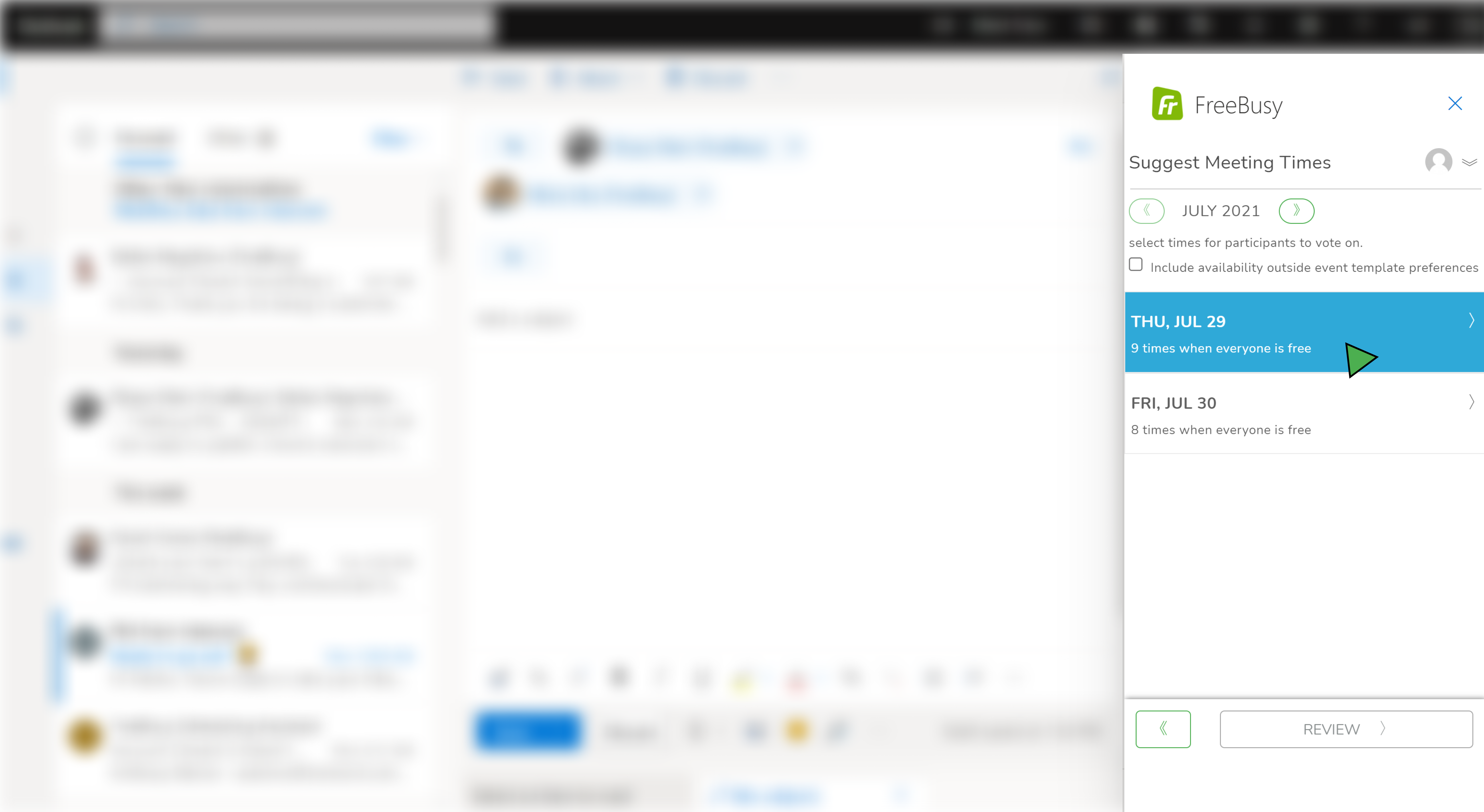 In FreeBusy add-on, within "Suggest Meeting Times" step, click on the date on which you want to schedule the meeting.