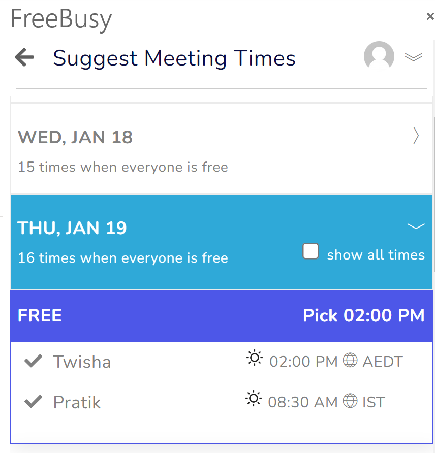 Note: To follow the steps of this article you and your colleague will need to signup for FreeBusy and install Outlook Add-in or Chrome Extension. If you haven't done it yet then: Click here to install Outlook Add-in for Outlook usersand Click here to install Chrome Extension for Gmail or any other email platform users.