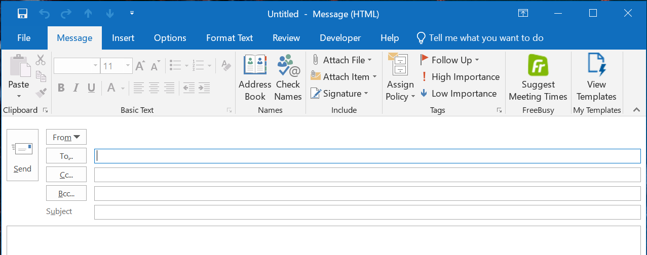When you compose or reply to an email in Outlook desktop and when you schedule or reschedule a meeting in Outlook desktop, you`ll be able to open the FreeBusy add-in from the ribbon. If you see two FreeBusy icons, open the one labeled "FreeBusyAlt".