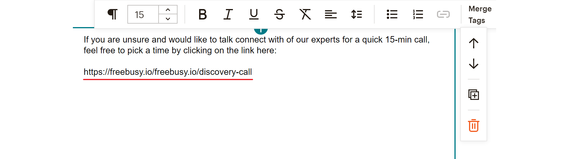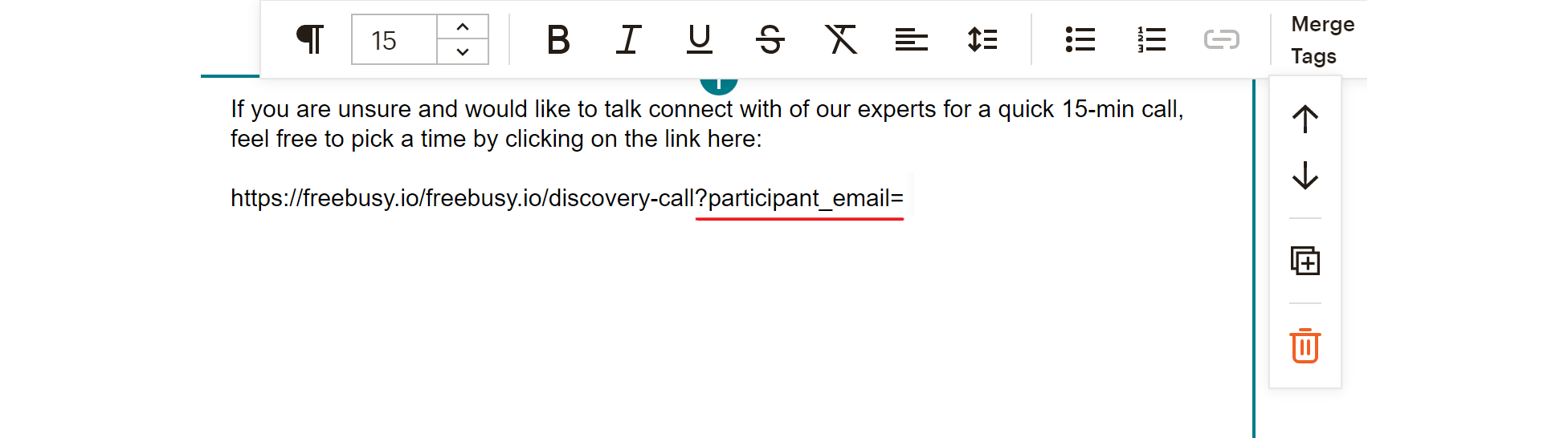 2. Paste the link in your email template body as it makes it easier to add URL parameters with Merge tags we need.
