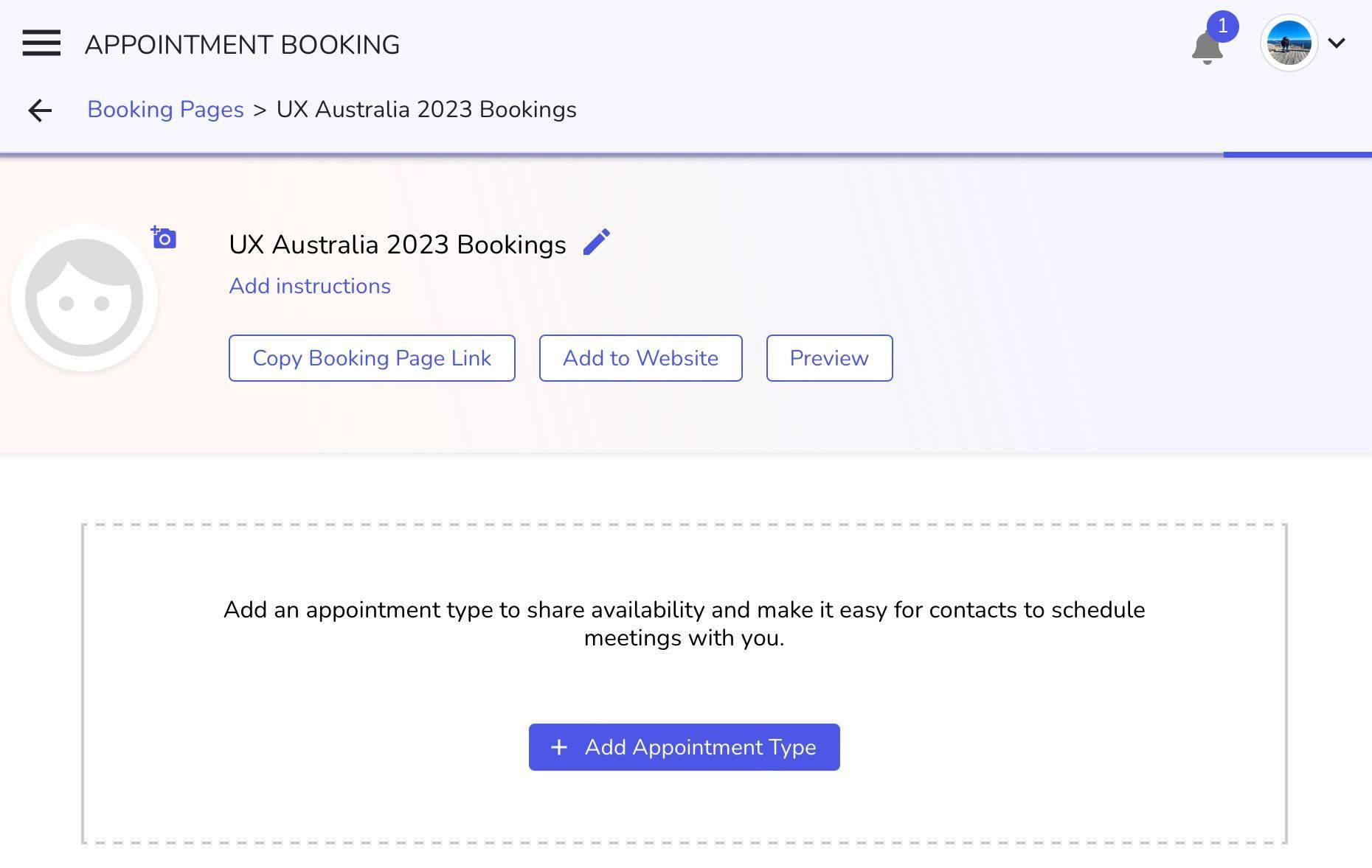 Step 5: Click on "Add Appointment Type" on newly created booking page and add new appointment types as per your need.