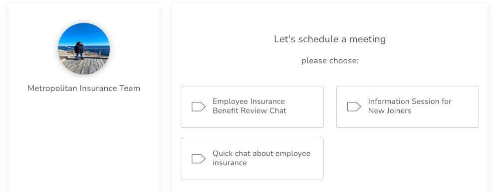 Booking Page is as name suggest a page that allows your guests to book meeting with you. Your Booking Page contains list of Appointment Type that you can use to offer multiple choice of meeting to your guests.